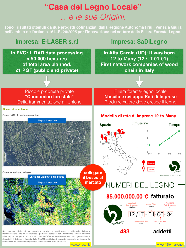 The project idea is rooted union of two projects developed by the companies E-Laser and SaDiLegno, co-financed by the Regione Autonoma Friuli Venezia Giulia, in the context of Article 16 L.R. 26/2005 for innovation in the supply chain Forest-Wood sector.
